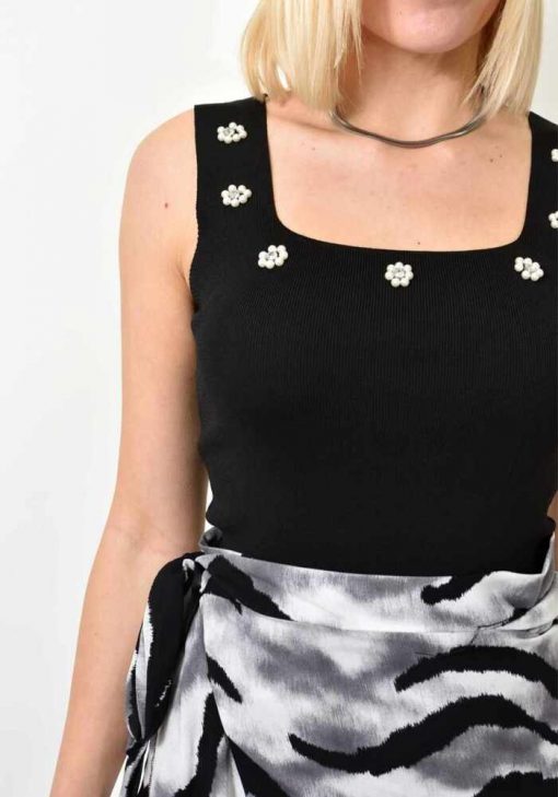 - Τόπ με τετράγωνη λαιμόκοψη με πέρλες και στράς.